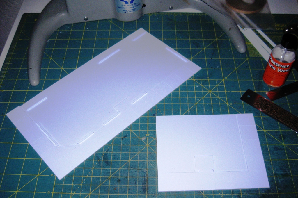 The Walthers kits come with their own bases and sidewalks. The DPM kits, however, do not so you must fabricate your own. In this case I used 0.04” styrene sheet stock (plain) for the base and laminated 0.02” styrene sheet stock (plain with manual scribing) along the front to simulate the sidewalk. When placed beside a Walthers base, the sidewalk top surfaces line up nicely.