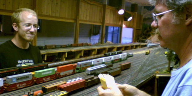 We enjoy operating the Mountain Pacific Lines HO layout like a real railroad. Visitors are welcome to watch an operating session from our viewing area while club members team up to keep the trains running and switching. Crew members volunteer for various jobs during each session, coordinated by a dispatcher. We use the car-card and way-bill system for car movements, and radios provide quieter and more realistic communication between the dispatcher and crews.